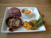 靴をぬいでのフローリングカフェテラスはいい感じです。足元は当然床暖です。でもこちらは生憎満席なので、次回にね。お昼もまわってしまったので、それぞれお好きなランチを食べることになりやした。デザートのフルーツ盛り合わせは、さすが、フルーツカフェといえるだけはありましたよ。 |